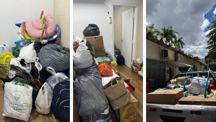 Esta foi a primeira remessa de doações, e seguimos recebendo contribuições no Departamento Social até domingo, dia 08/03.