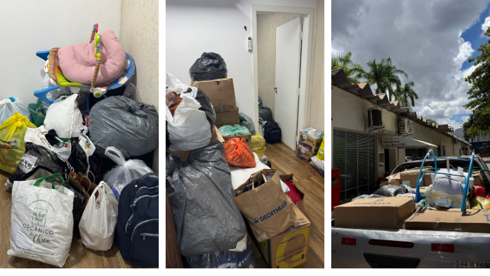 Esta foi a primeira remessa de doações, e seguimos recebendo contribuições no Departamento Social até domingo, dia 08/03.