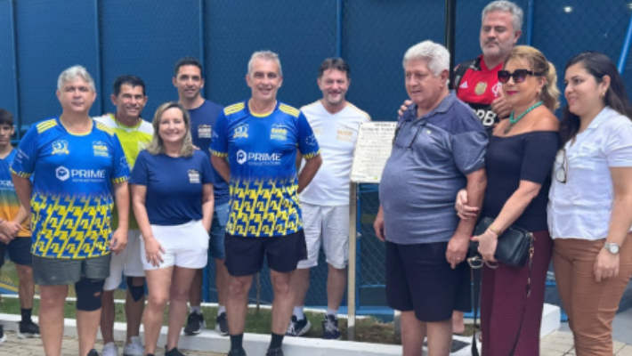 A cerimônia contou com homenagem a Sérgio Pinto Vaz, que agora dá nome oficialmente à Arena. Sérgio é uma figura fundamental na história da nossa instituição e ocupou cargos como vice-presidente por dois mandatos e, posteriormente, assumindo a presidência, entre os anos de 2010 a 2013, sempre com um olhar atento ao crescimento do esporte e ao fortalecimento da comunidade.